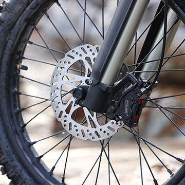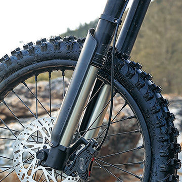 Off-road suspension improves e-bike performance by absorbing shock and impact from rough terrain. It enhances stability, comfort, and control while riding over rocks, roots, or bumps. With a high-performance suspension system, e-bikes offer smoother rides, making them more suitable for trail riding and rugged off-road environments.
