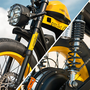 Key features include dual hydraulic brakes, full suspension, bright lighting, and reinforced frames. The HappyRun G100 Pro includes all of these, providing confident handling at high speeds and in varied conditions..